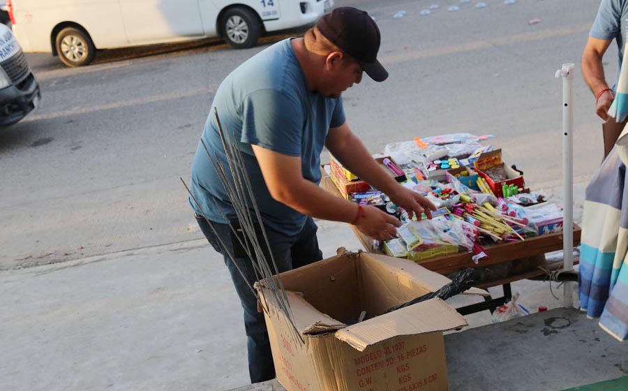 “Los responsables no cuentan con licencia del municipio para venta en vía pública y en el caso de los explosivos, tampoco cuentan con la ubicación ni identidad de su proveedor de mayoreo, de modo que podamos corroborar si esa mercancía cuenta con supervisión y permiso de manejo de explosivos por parte de la Sedena”, informó el funcionario.