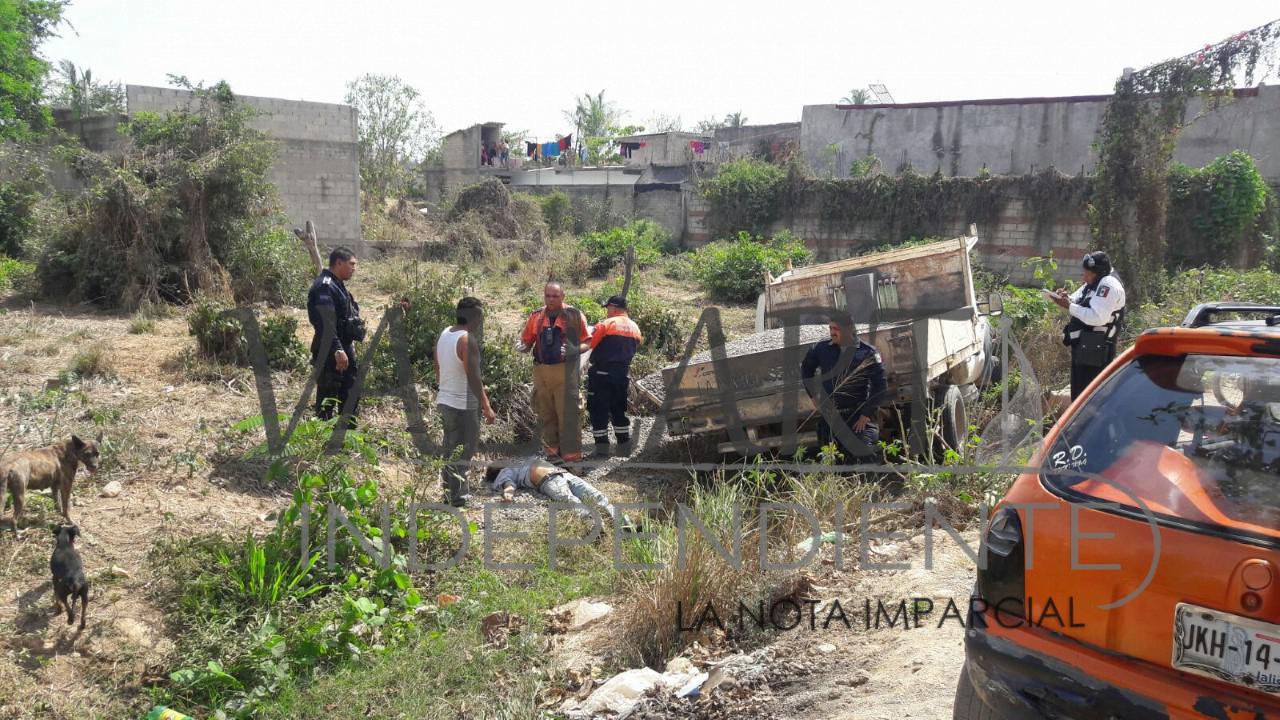 Lamentable accidente se registro en la delegación de Ixtapa por la calle Estaño en la colonia La Mina, se dio a conocer que el hombre estaba descargando una camioneta de tres toneladas cargada con grava y de pronto se le fue hacia un canal y el hombre se avento para intentar frenar la camioneta y lamentablemente no alcanzo a librar y fue aplastado por la misma.