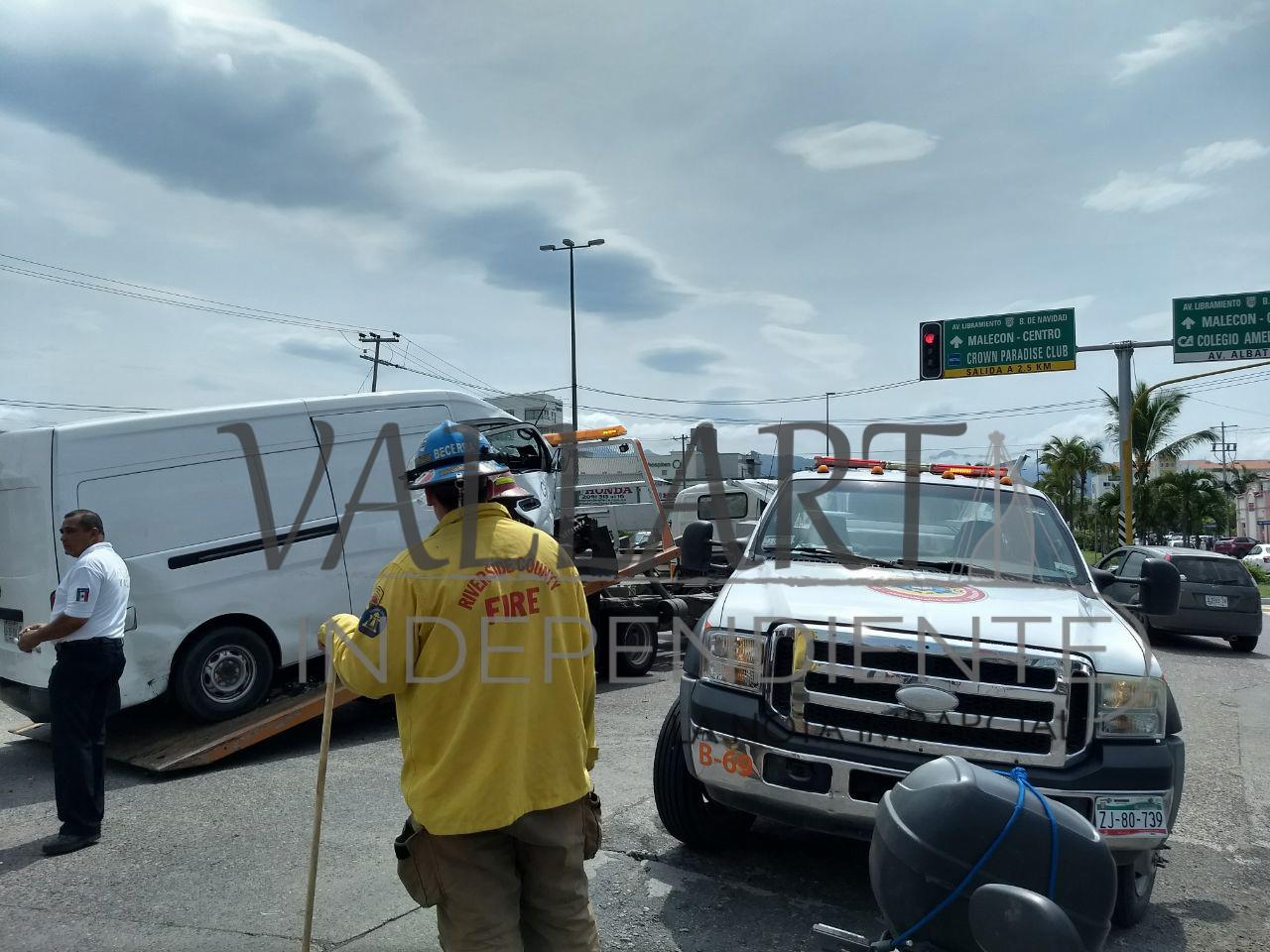 El percance sucedió a poco antes de las 12:30 horas sobre el bulevar Francisco Medina Ascencio, cuando una camioneta Nissan cargo circulaba sobre los carriles centrales de la vialidad, pero al llegar al semáforo del crucero de la Plaza Marina, un Jeep se cruzó intempestivamente desde la lateral.