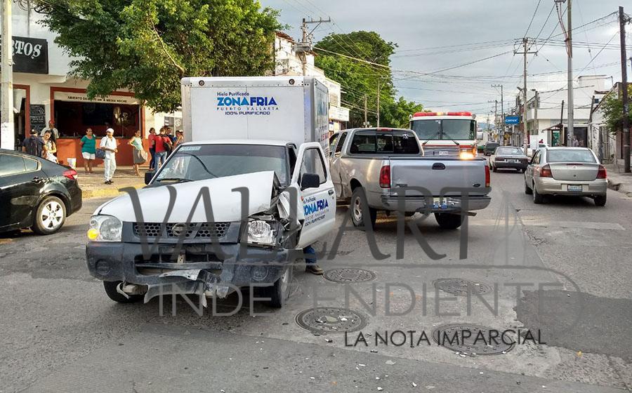Aparentemente la falta de precaución de uno de los conductores propició el choque entre una camioneta pick-up y otra de cara de una empresa de hielo.