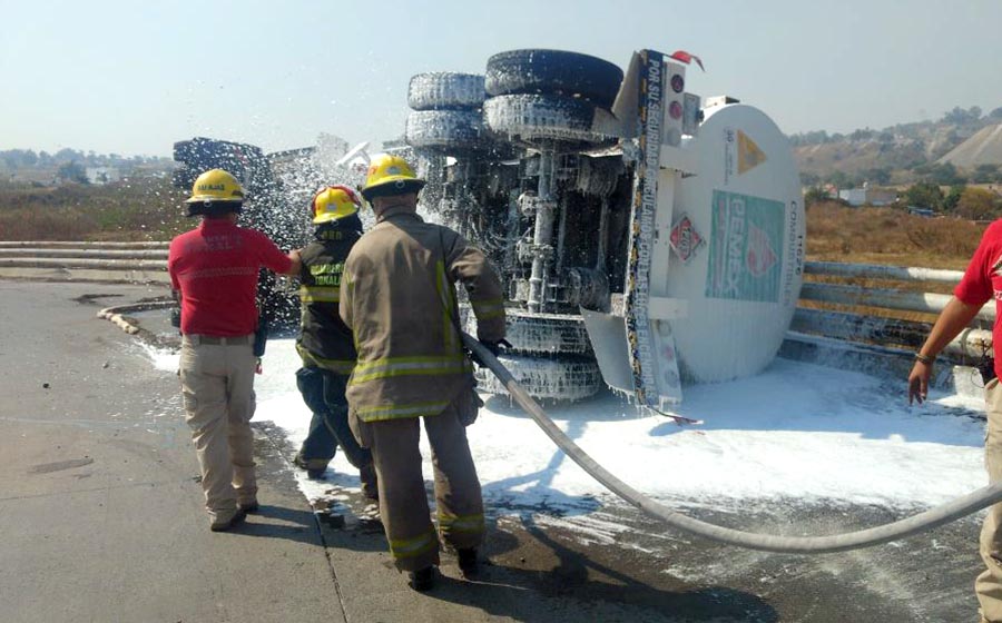 La volcadura de una pipa cargada con 30 mil litros de combustible movilizó al personal de la Unidad Estatal de Protección Civil y Bomberos de Jalisco (UEPCBJ) en el municipio de Tonalá, sin que se registraran lesionados de gravedad.