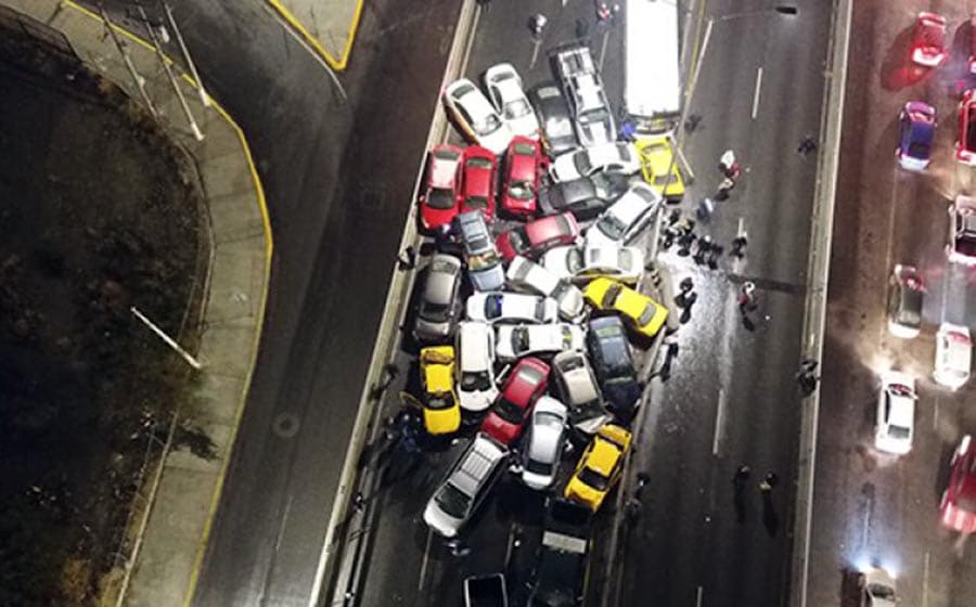 Al menos 28 vehículos chocaron la madrugada de este miércoles al norte de la capital de Monterrey, Nuevo León, a causa del pavimento recubierto de hielo por temperaturas ambientales de congelación. En el lugar fueron contabilizados dos personas lesionadas leves y un caos vehicular que se ha prolongado durante horas.