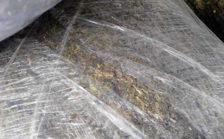 Por tal motivo, las autoridades estatales, procedieron a revisar los costales, logrando asegurar de su interior 56 kilos 831 gramos de cannabis sativa (marihuana)