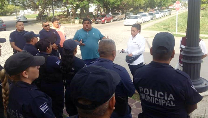 Durante un cambio de turno la candidata a la presidencia de Puerto Vallarta por la coalición ‘Juntos Haremos Historia’ Laurel Carrillo Ventura presentó sus propuestas a los cuerpos policiacos del municipio.