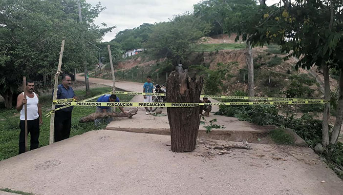 “Tener precaución a todas las personas al querer cruzar las losas aquí en Colomo, ya que se acaba de hundir un pedazo, ya que de noche no hay luz pública y es muy peligroso ya sea para los carros y más que nada a los niños que van y vienen en motos”, publica Eréndira Chávez Bernal, habitante de la localidad.