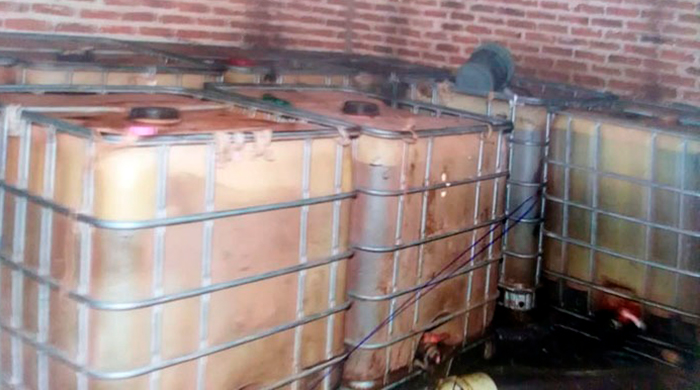 Por lo anterior, las autoridades estatales, procedieron a realizar una inspección, logrando asegurar de su interior diversos contenedores y bidones conteniendo aproximadamente mil 315 litros de hidrocarburo.