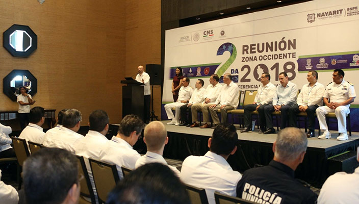 El Comisionado Nacional de Seguridad Pública, Renato Sales Heredia, acompañado por José Antonio Serrano Guzmán, Secretario General de Gobierno; en representación del Gobernador Constitucional del Estado C.P. Antonio Echevarría García y el Secretario de Seguridad Pública del Estado de Nayarit, Javier Herrera Valles, presidieron la Inauguración de la Conferencia Nacional de Secretarios de Seguridad Pública de la Región Occidente que integra a ocho entidades del país.