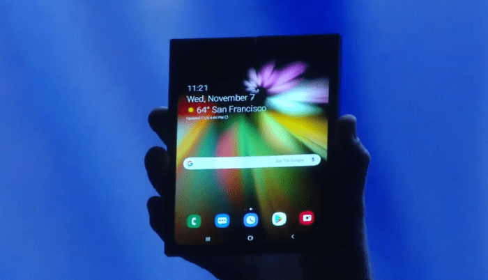 Samsung mostró el dispositivo plegable en un evento privado en Las Vegas. A falta de una de confirmación oficial, todo indica que el smartphone con pantalla plegable será presentado el mismo día. Algunos afortunados ya pudieron ver el dispositivo en un evento privado. Durante el CES 2019 de Las Vegas, clientes seleccionados y socios acudieron a una reunión confidencial para tener un primer vistazo.