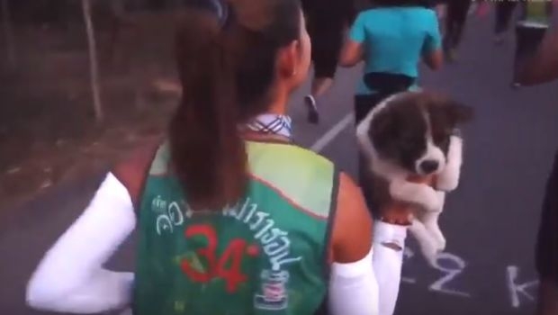 Así se le presentó un gran momento a una atleta que corría un maratón en Tailandia el pasado 20 de enero. Mientras la deportista avanzaba por una carretera, encontró a un cachorro sólo en la vereda y no dudó en disminuir su velocidad para buscar a la persona que habría llevado ahí al animal, pero no logró ver a nadie.