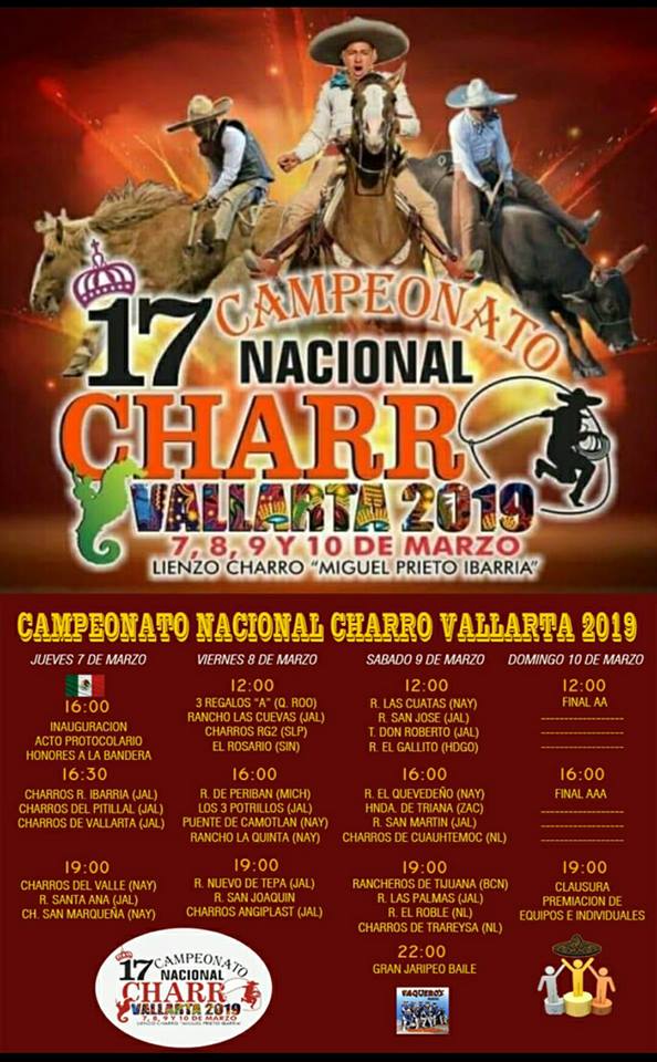 Ya se encuentra todo listo para la décimo séptima edición del Campeonato Nacional Charro Puerto Vallarta 2018, a llevarse a cabo desde el jueves 7 al domingo 10 de marzo en las instalaciones del lienzo charro ‘Miguel Prieto Ibarría’.