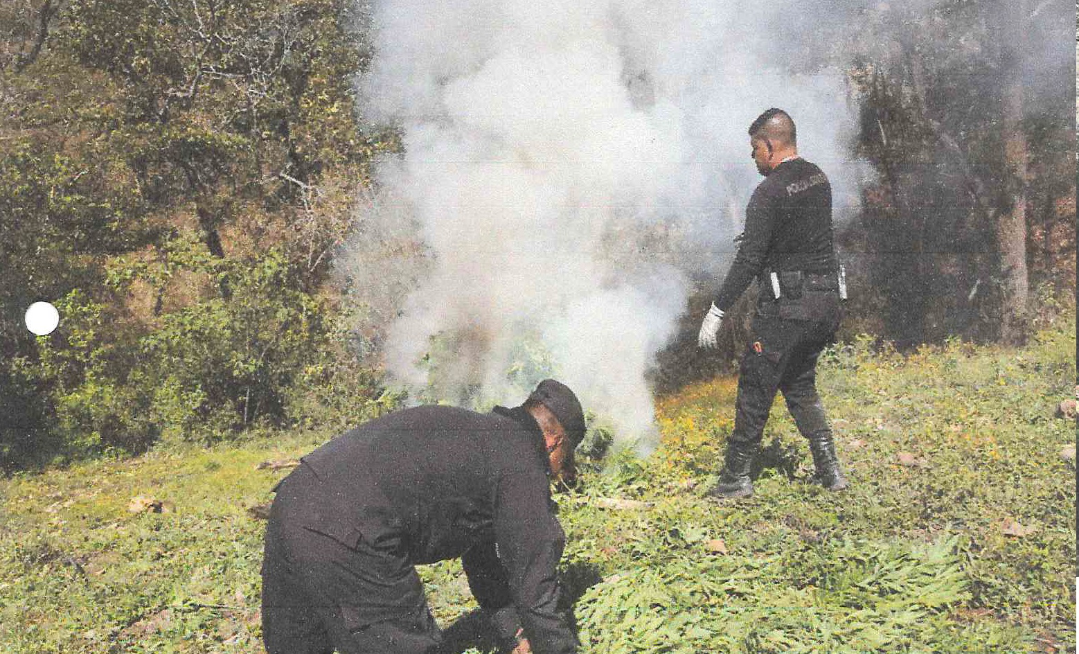 En estos predios, las autoridades estatales destruyeron por medio de incineración 157 mil 200 plantas de Cannabis Sativa (marihuana) de entre un metro 30 centímetros y un metro 50 centímetros de altura en una superficie aproximada de 13 mil 100 metros cuadrados.