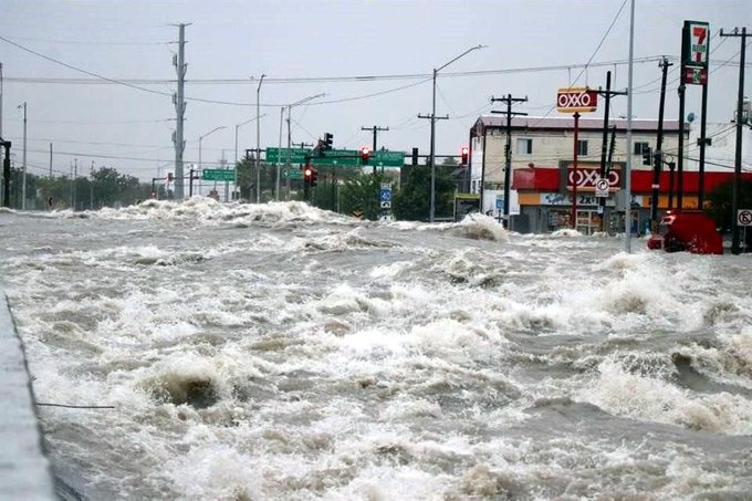 Mientras que en el municipio de Salinas Victoria, un hombre a bordo de una máquina retroexcavadora quedó atrapado en la corriente del río Salinas y se realizan acciones para su rescate.