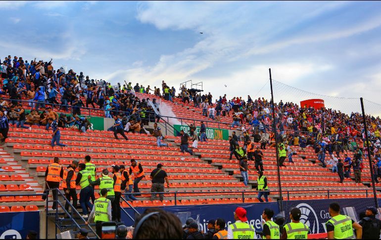 El director de Seguridad Pública del Estado indica que los actos iniciaron cuando en el minuto 27, un aficionado del equipo visitante aventó una butaca que lesionó a una menor de 14 años.