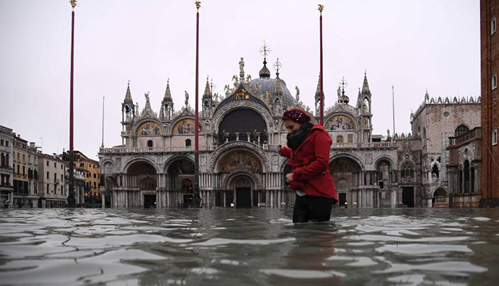 Por el grado que llegó el nivel de agua, el alcalde de la ciudad, Luigi Brugnaro, decidió cerrar la plaza por motivos de seguridad hacia los residentes y turistas.