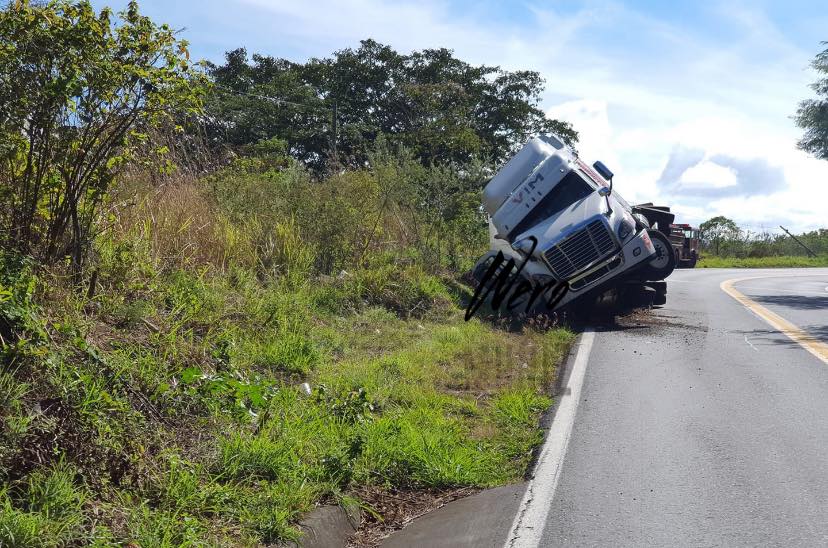 Se registró la volcadura de un tráiler que transportaba gas natural sobre la carretera federal 200 Tepic-Puerto Vallarta, en el kilómetro 46, a la altura de la localidad La Noria, municipio de Compostela.