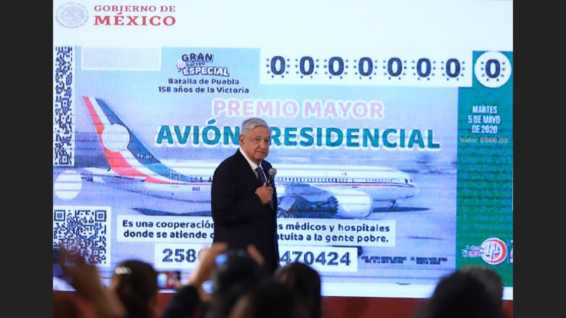 El Presidente Andrés Manuel López Obrador convocó a los ciudadanos a comprar un boleto para la rifa del avión presidencial y con ello estigmatizar el derroche y conseguir recursos para equipo médico y rehabilitación de hospitales públicos.