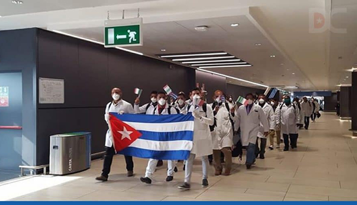 Cientos de médicos y enfermeros cubanos ya colaboran en el terreno con varios países de América Latina y también en Italia en el enfrentamiento a la pandemia del coronavirus. Este domingo ha llegado a la región de Lombardía un equipo de 53 sanitarios cubanos, epicentro de la Covid-19 en Europa, para prestar ayuda de emergencia ante el desbordamiento del sistema de salud en esta zona de Italia.