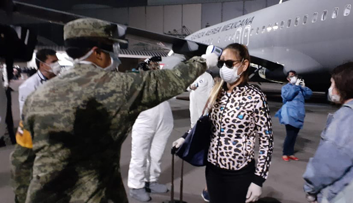 Los 280 connacionales repatriados no desciendieron de las aeronaves hasta que se les aplicaron estrictas medidas de bioseguridad, para detectar si alguno de ellos se encuentra contagiado por coronavirus COVID-19.