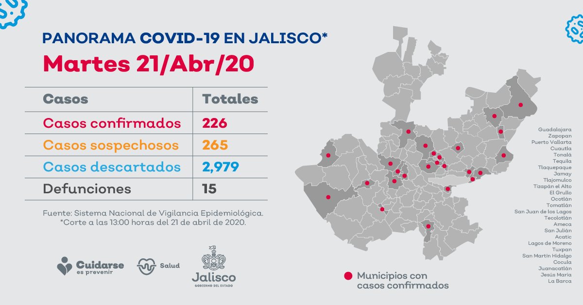 El estado tiene 226 contagios hasta el corte del martes 21 de abril, 10 nuevos comparando con el corte del día anterior, además de tener ya 15 defunciones.
