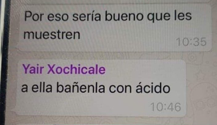El colectivo feminista Brujas del Mar difundió una conversación del director del DIF de municipio de Zongolica, Yair Xochicale Porras, donde pide que bañen con ácido a una mujer que había realizado críticas contra el ayuntamiento.