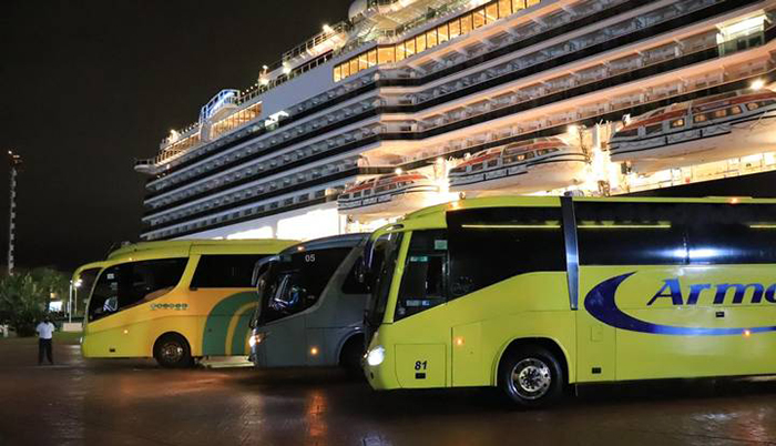 Posteriormente los tripulantes de este crucero en varios autobuses fueron trasladados del muelle al Aeropuerto Internacional Gustavo Díaz Ordaz, para viajar a su destino.