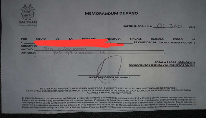Enmedio de la pandemia de coronavirus covid-19, algunos automovilistas fueron sancionados por no portar cubreboca en Saltillo, según informó la policía municipal.