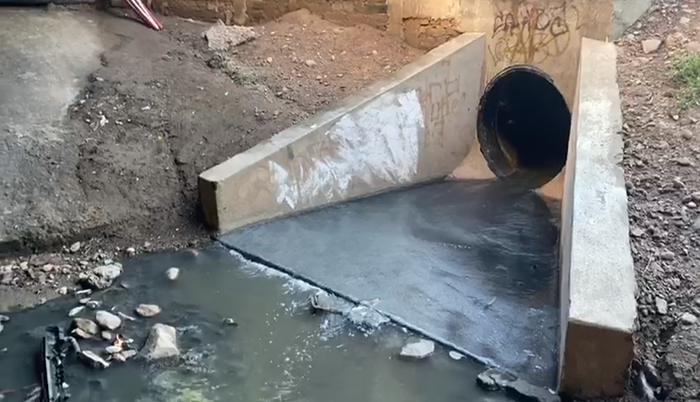 En un video, se puede apreciar la diferencia de color del agua de la lluvia, que está sobre el río, y la que sale de un tubo; el olor, nos narran, es fétido: