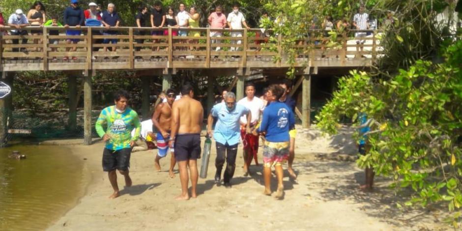 Algunos turistas se dieron cuenta y trataron de ahuyentar al reptil, reportó la agencia Quadratín.