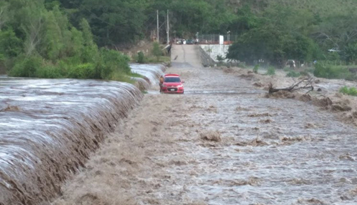 Por la madrugada del lunes, cerca del pueblo de Salvador Allende, Tepic, un vehículo se lo llevó la corriente y también tuvo que ser auxiliado por la Policía.