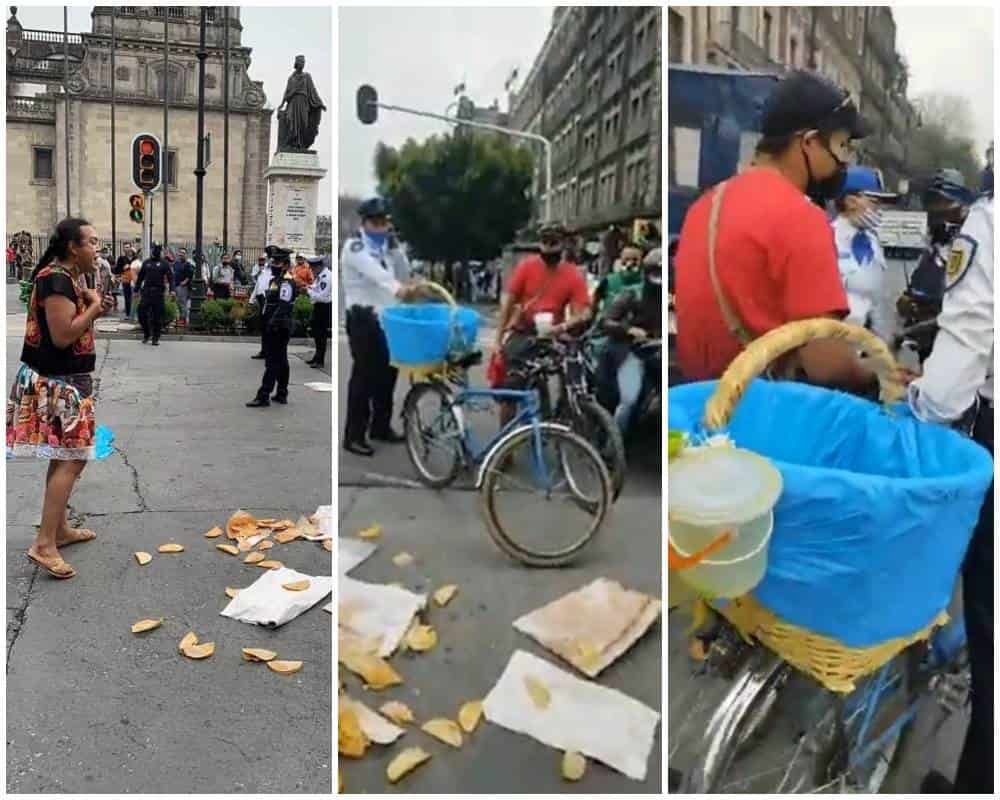 Los hechos ocurrieron a un costado de la Catedral, en el Centro Histórico, cuando policías capitalinos arribaron para quitarle sus enseres de venta. Lady Tacos comenzó una transmisión en sus redes sociales, en donde quedó registrado el momento en que los uniformados decomisaron su canasta y bicicleta.