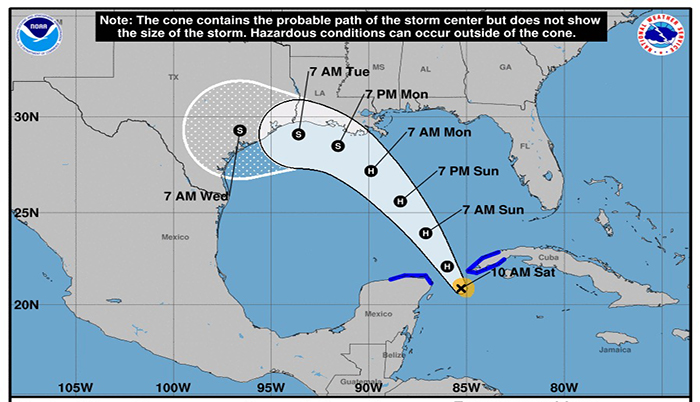‘Marco’ se desplaza a 19 kilómetros por hora con vientos sostenidos de 85 kilómetros por hora y rachas de hasta 105 kilómetros por hora.