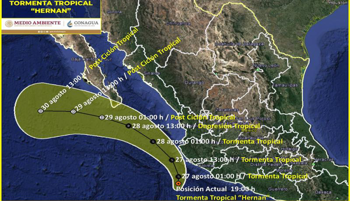 Aunque se prevé que no cause daños, las autoridades estatales pidieron a la población de 21 municipios de Jalisco estar alerta después de que la depresión “Trece-E” fuera clasificada como la tormenta tropical “Hernán”, informó la Unidad Estatal de Protección Civil y Bomberos Jalisco (UEPCBJ).