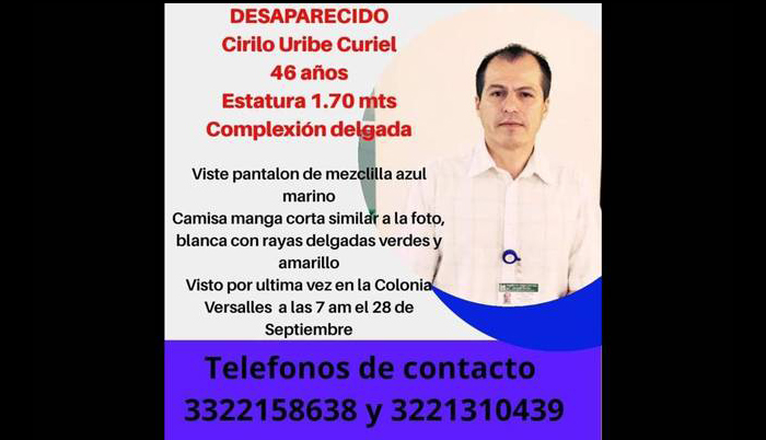 De acuerdo con información difundida por los familiares en redes sociales, Cirilo fue visto por última vez a las 07:00 horas del 28 de septiembre en la colonia Versalles.