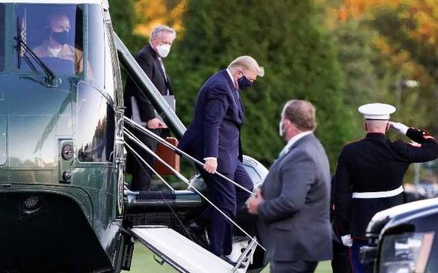 Visiblemente pálido, el presidente de EU salió caminando de la Casa Blanca al helicóptero que lo lleva a un hospital militar.