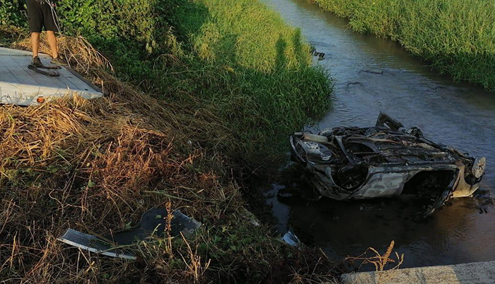 Un vehículo de la marca Toyota tipo Corolla en color plata modelo 2014 volcó y terminó calcinado; dos personas del sexo femenino viajaban en su interior, una de ellas falleció mientras que la otra mujer resultó lesionada.