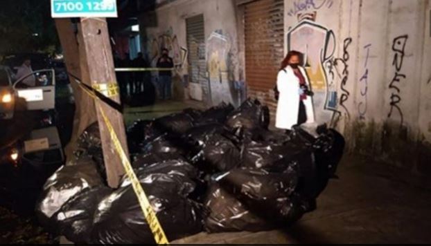 Vecinos señalan que dos sujetos a bordo de una camioneta color blanco arrojaron las bolsas de basura sobre la banqueta, por lo que pidieron el arribo de policías, quienes pidieron la presencia de paramédicos del Escuadrón de Rescate y Urgencias Médicas (ERUM) para resguardar las bolsas.