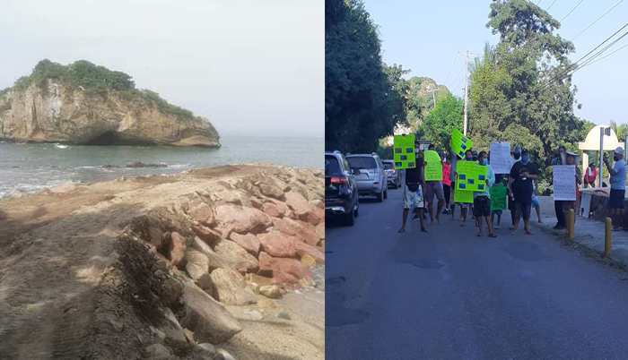 Manifestantes cerraron este martes la carretera federal 200 al sur de Puerto Vallarta, debido a que piden a las autoridades que den marcha atrás a la obra de construcción de un espigón, ubicado frente a los arcos de Mismaloya.