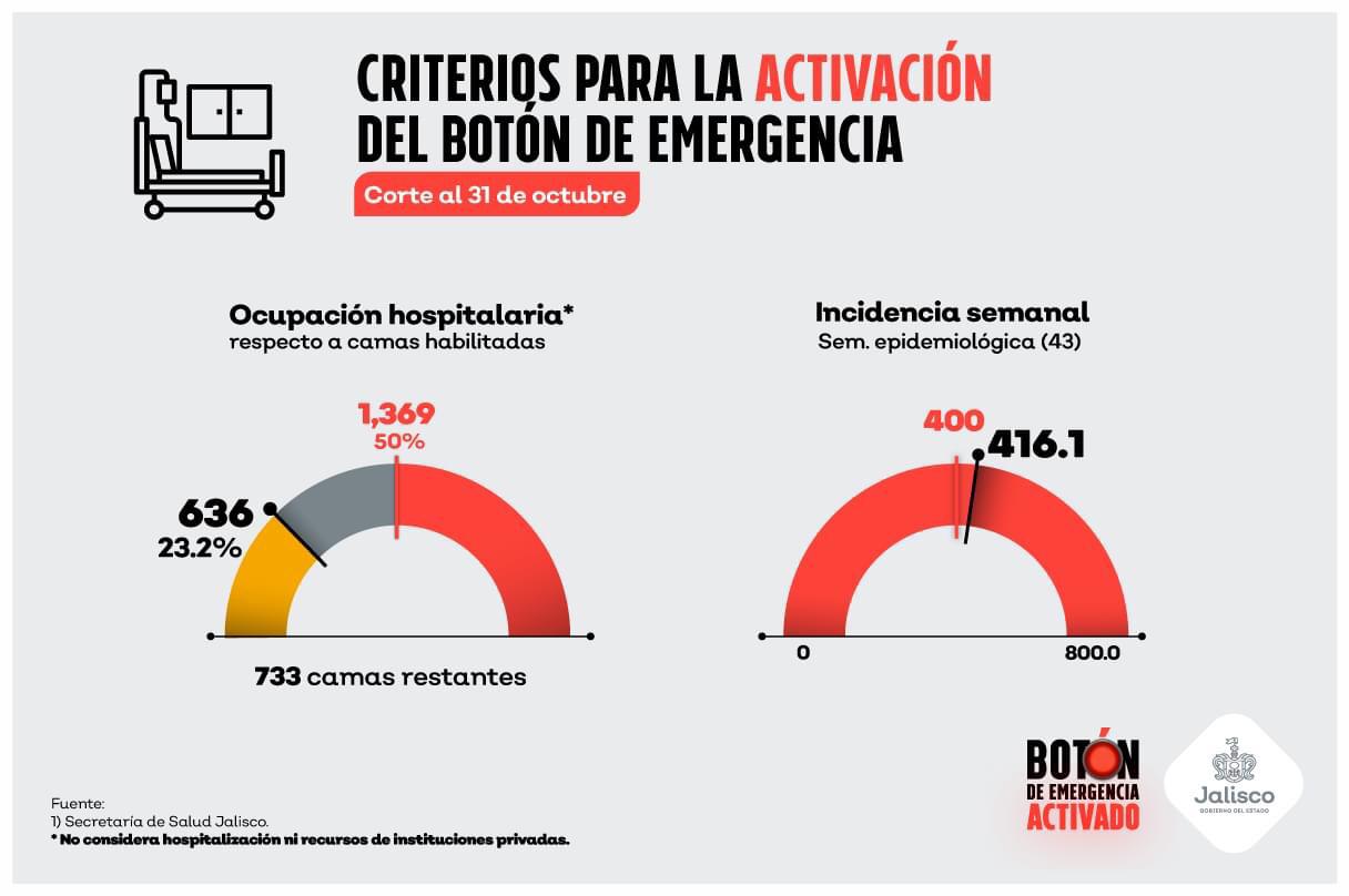Así lo dio a conocer el gobernador de Jalisco, Enrique Alfaro en su publicación de los domingos en redes sociales donde presentó los Criterios para la Activación del Botón de Emergencia.