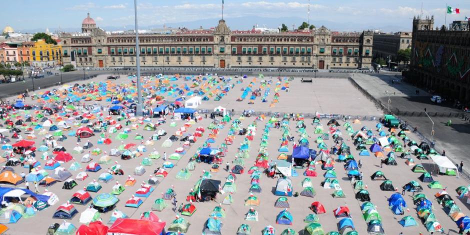 En principio, este plantón se instaló sobre avenida Juárez, pero sus integrantes finalmente pudieron llegar en septiembre hasta la plaza pública situada frente a Palacio Nacional.
