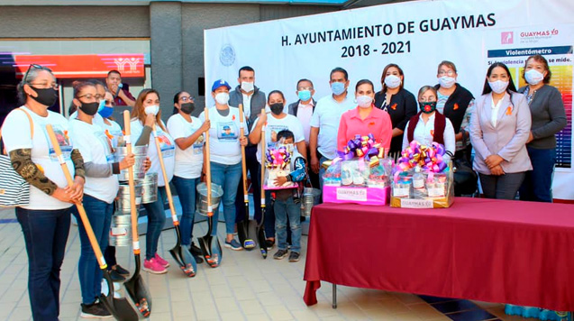 En el Día Internacional para Erradicar la Violencia Contra las Mujeres, la alcaldesa Sara Valle entregó cubetas de fierro, cubrebocas, gel antibacterial, guantes de látex, palas, sueros y agua embotellada al colectivo Guerreras Buscadoras, organización que busca familiares desaparecidos en los municipios de Empalme y Guaymas en Sonora.