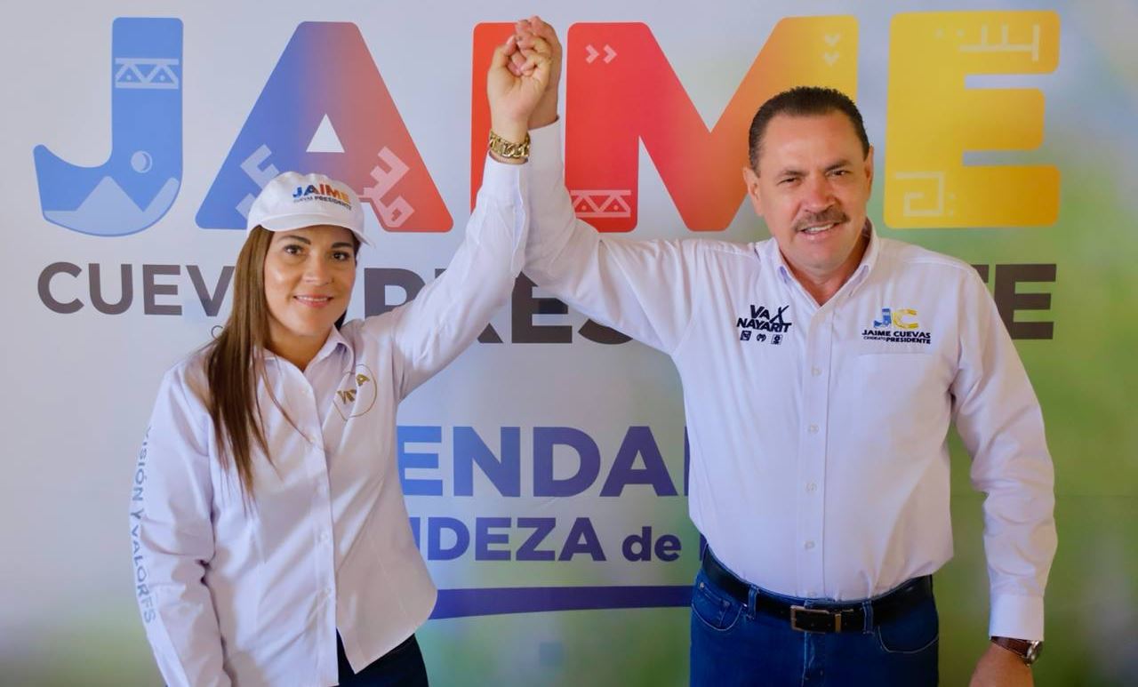 Al reconocer que el proyecto del doctor Jaime Cuevas es puntero en todos los estudios de intención del voto, Karina Polanco tomó la mano del abanderado de la coalición Va X Nayarit para levantarla en señal de triunfo, “por el bien de Bahía de Banderas y Nayarit, me sumo a su candidatura”, puntualizó con alegría.