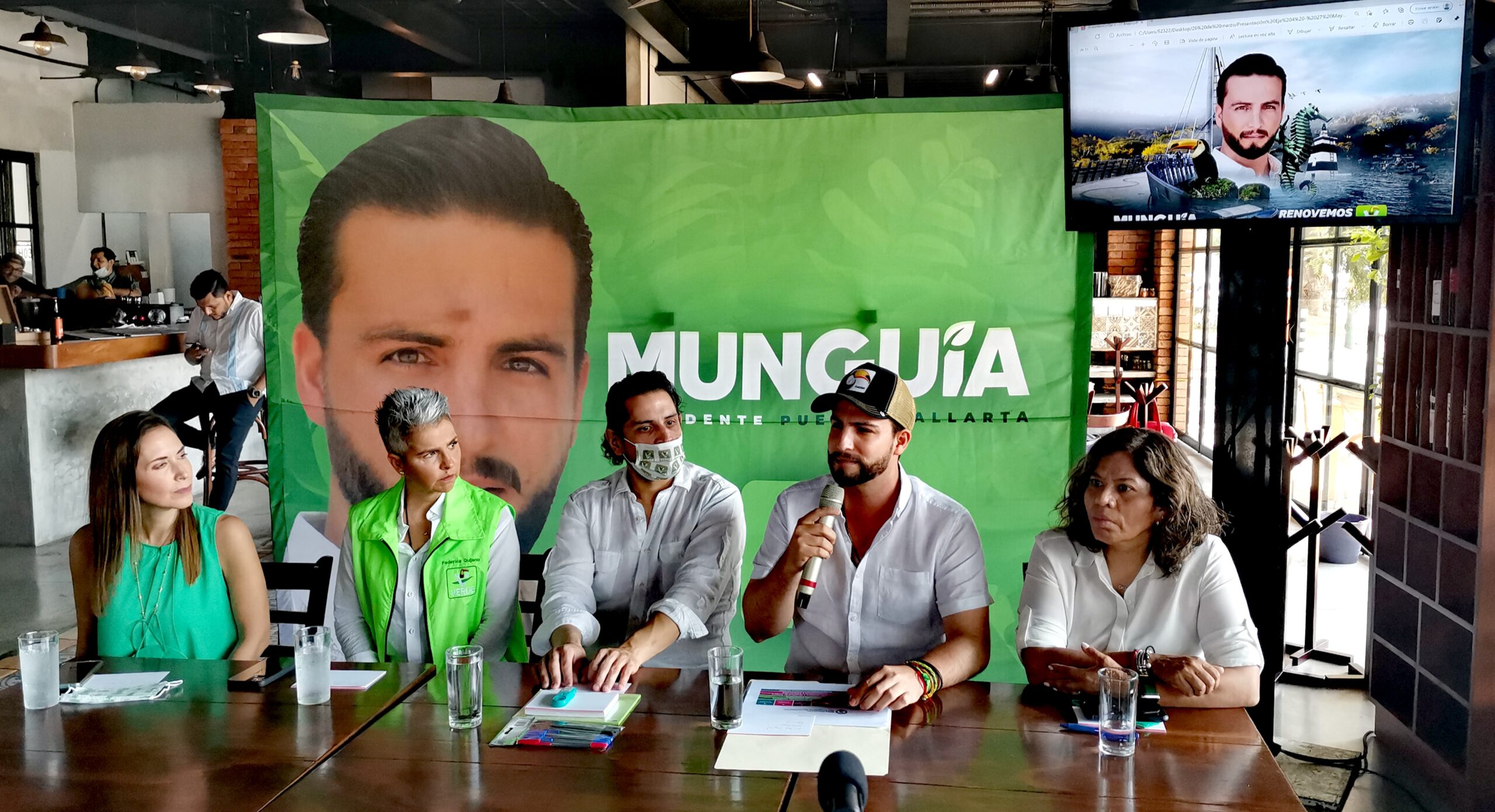 Acompañado de Enrique Aubry, secretario general del Partido Verde en Jalisco, y las embajadoras del partido Federica Quijano, Martha Guzmán y María José Alcalá, Luis Munguía presentó el eje 4 de su Gobierno: Administración e Innovación Gubernamental.