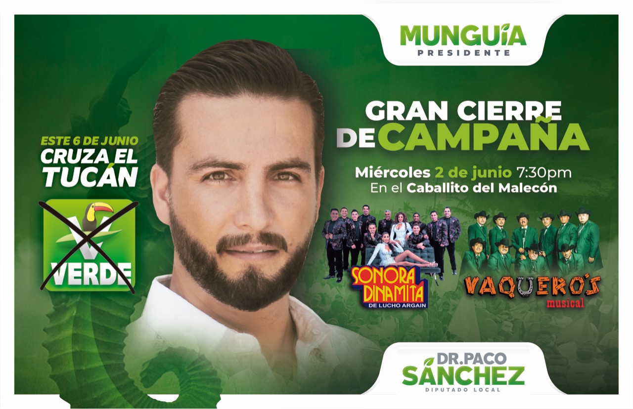 Todo está listo para el próximo cierre de campaña del candidato del Partido Verde a la presidencia municipal de Puerto Vallarta, Luis Munguía, anunció este jueves en rueda de prensa.