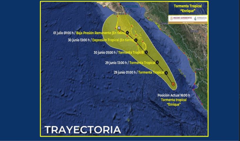 ‘Enrique’ ha perdido fuerza y ya se degradó a tormenta tropical, de acuerdo al último informe de la Comisión Nacional del Agua.