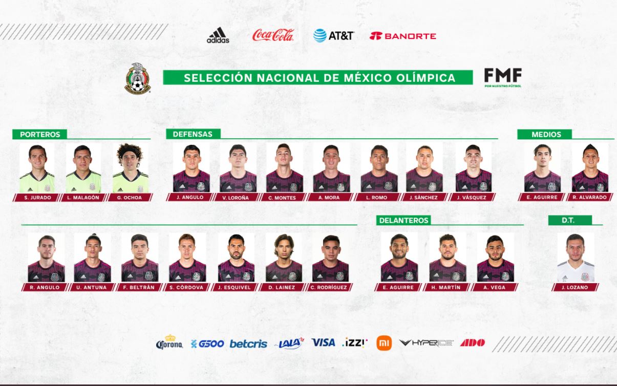 El Comité Olímpico Mexicano reveló la lista de los 22 convocados de la Selección Mexicana que disputará los Juegos Olímpicos de Tokio 2020.