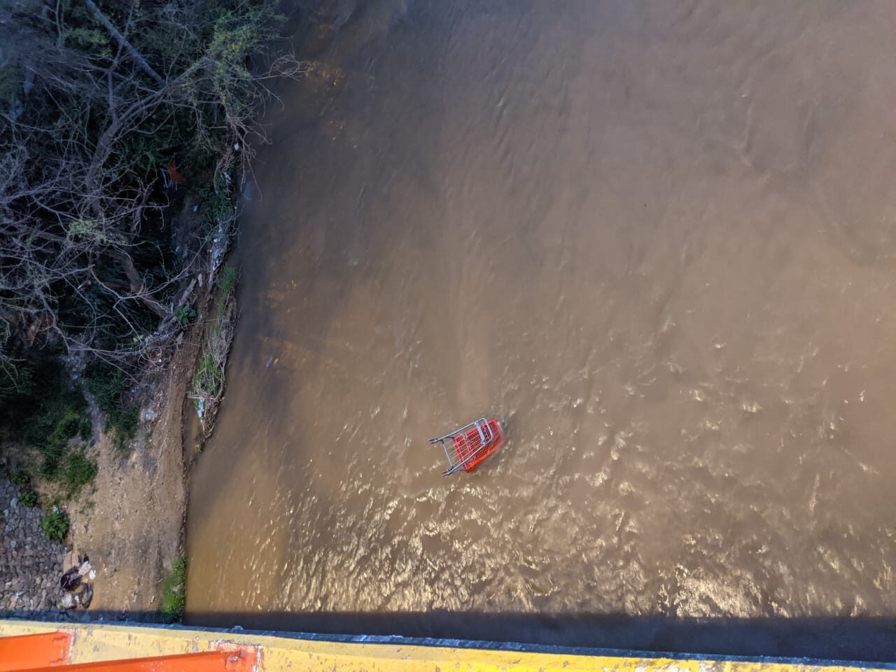 Desde el mismo puente se alcanzan a ver los carritos, uno sobre el agua, el otro a un costado; también se ve quiénes los llevaron, los habitantes del río, los ‘malvivientes’ como los llaman los propios vecinos.