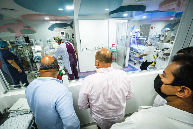 Alfaro Ramírez mencionó que al pasar a revisar la zona del cuarto de máquinas “se pudo ver el tamaño de la obra que se hizo en este sentido, terminamos esa etapa ya con 45 millones 470 mil pesos de inversión y estamos al 88% de la segunda etapa que tiene una inversión adicional de 42 millones 400 mil pesos, en donde estamos rehabilitando la unidad de cuidados intensivos neonatales, otra parte del cuarto de máquinas, la construcción del área nueva de cocina y dormitorios para residentes”.