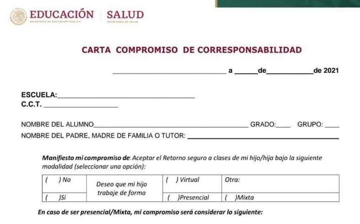 Luego de que el presidente López Obrador criticara la publicación de esta carta, la SEP indicó que ya no será requisito para el regreso a clases.