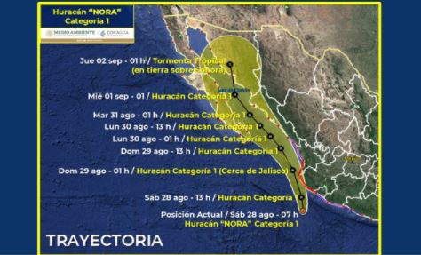 El huracán categoría 1 Nora dejará lluvias intensas en toda la Bahía de Banderas, además de marejadas importantes, informaron autoridades de Protección Civil esta mañana.