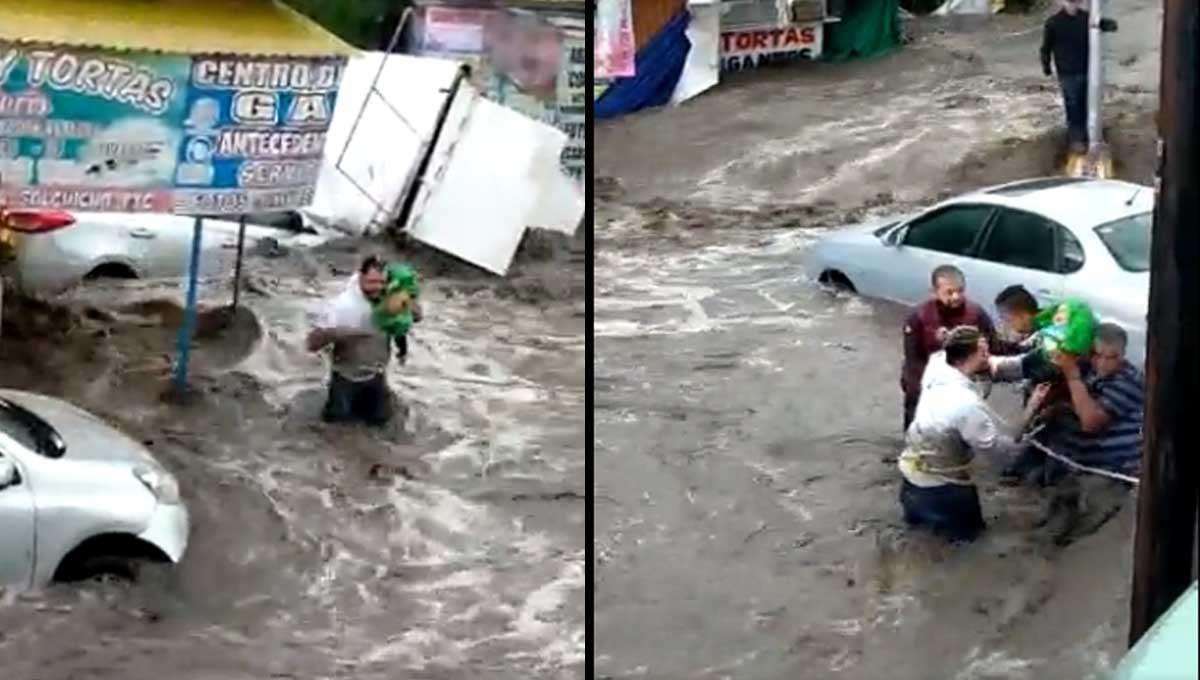 Un grupo de personas rescató a un bebé de las inundaciones en Ecatepec, Estado de México. Los hechos quedaron grabados y el video rápidamente se volvió viral en las redes sociales.